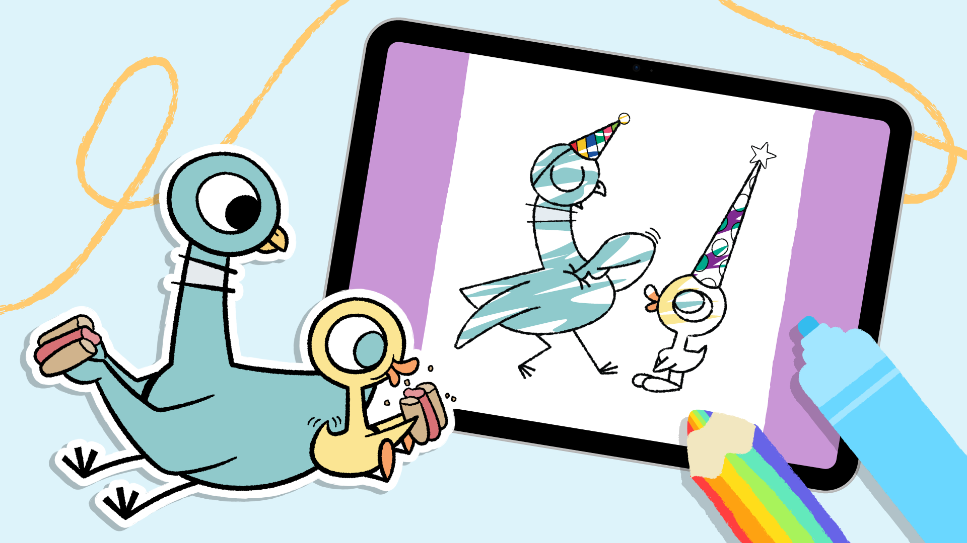 Starting on April 1, kids can get creative with The Pigeon and Duckling in Crayon Club. Bringing the magic of arts and crafts to kids’ fingertips, kids can celebrate The Pigeon’s Bird-Day, give some buses a new coat of paint, or throw a legendary hot dog party in three new coloring packs.